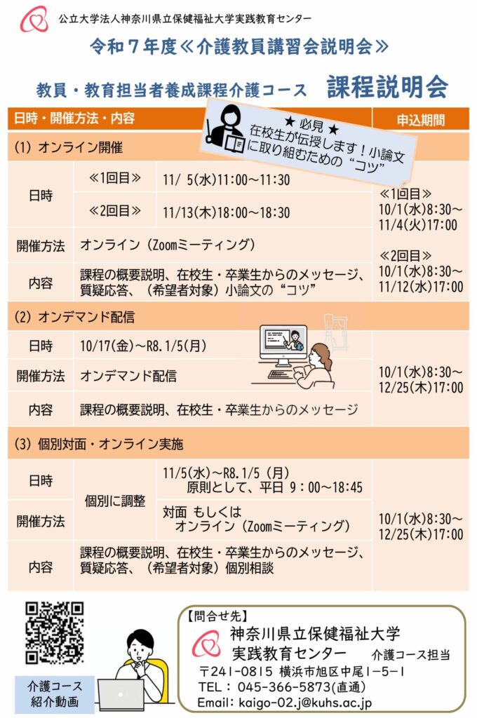 令和8年度 教員・教育担当者養成課程 介護コース入学希望者及びその職場関係者